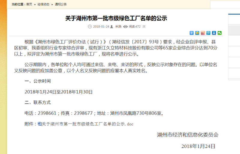 新開(kāi)元入選為湖州市第一批市級綠色工廠(chǎng)